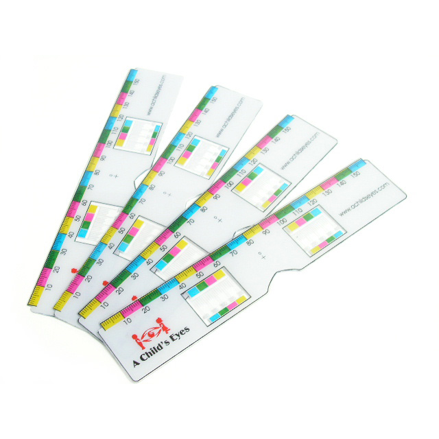 These fun colorful and easy to use pediatric rulers will help your opticians fit the littlest of your patients with ease. They feature easy and quick-to-read numbers for the busiest kiddos who won’t sit still for but a moment. The unique see-through windows will not obstruct the child’s vision, allowing them to feel more comfortable while being measured. It just takes a quick game of peek-a-boo and occluding for your optician to obtain an accurate monocular pupillary distance.